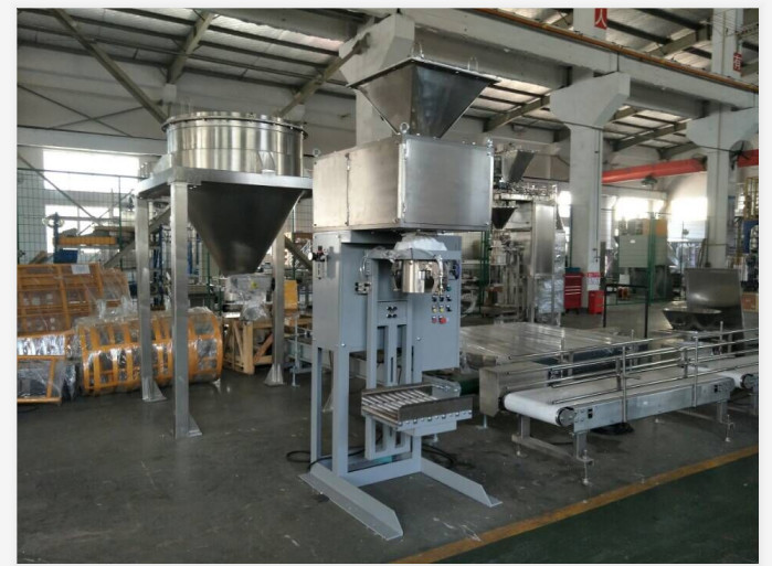 Attualmente, i controlli di sistema se il dispositivo di serraggio della borsa nello stato predeterminato, quando la borsa d'imballaggio è stata premuta, il sistema invia un segnale di controllo aprire la porta scaricante del secchio di pesatura ed il materiale entra nella borsa d'imballaggio.