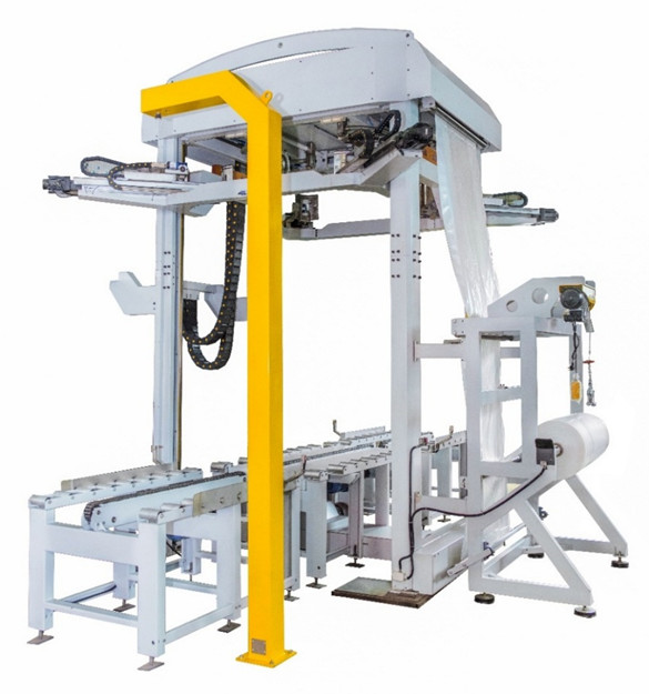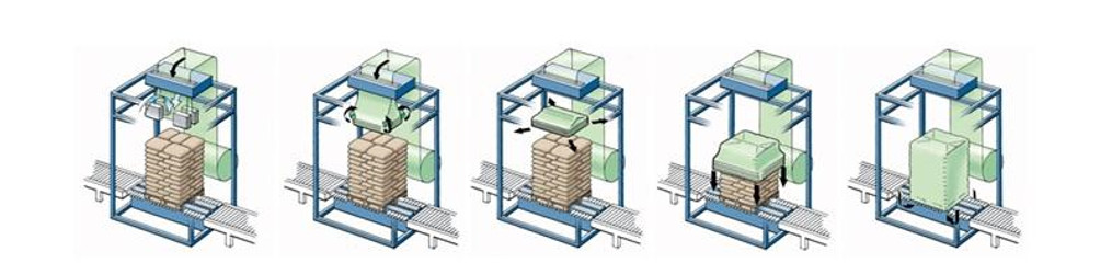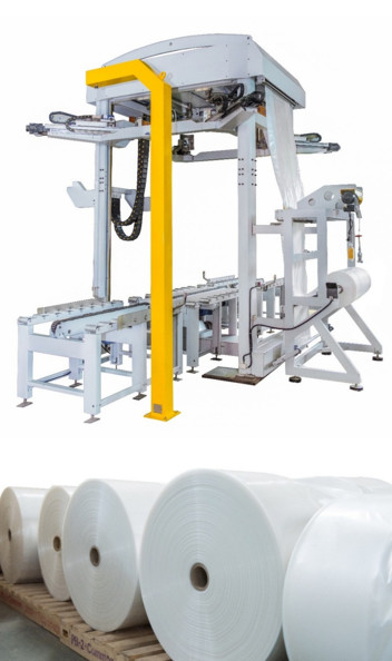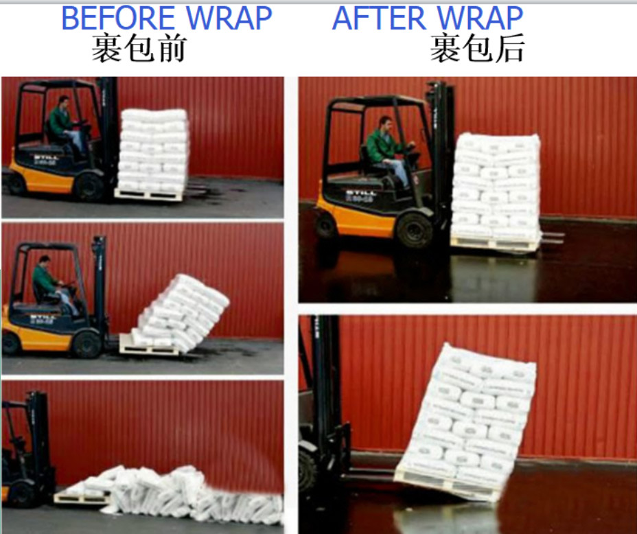 Sviluppato in base all'imballaggio termorestringibile del film ed alla tecnologia d'imballaggio dell'involucro di allungamento, ha assorbito i vantaggi del film tradizionale dell'involucro dell'imballaggio termorestringibile e di allungamento del film e presenta gli ovvi vantaggi nell'effetto d'imballaggio, riduzione dei costi d'imballaggio, imballante la velocità ecc. È ampiamente usato nell'imballaggio del trasporto del pallet delle industrie varie.