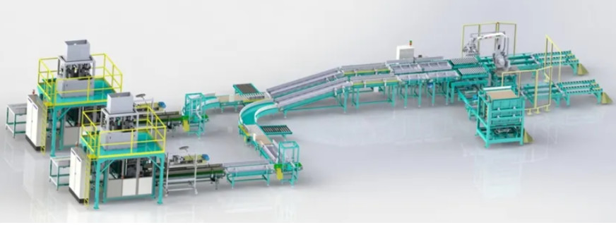 2. 25 chilogrammi (tipo borsa della valvola) linea d'imballaggio & di trasporto con palette automatica,