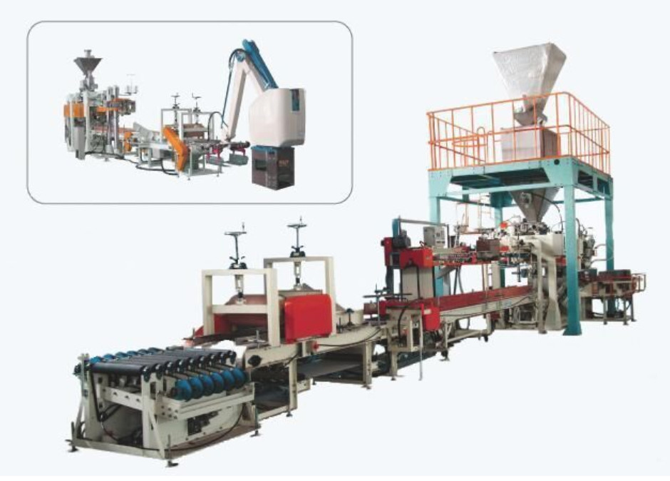 Borsa vuota dante automatica - pesatura automatica - materiale da otturazione automatico - macchina per cucire automatica - trasporto automatico - impilamento di trasporto con palette del robot automatico;