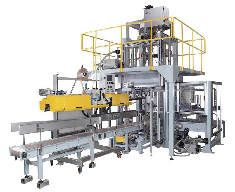 Borsa vuota dante automatica - pesatura automatica - materiale da otturazione automatico - macchina per cucire automatica - trasporto automatico - impilamento di trasporto con palette del robot automatico;